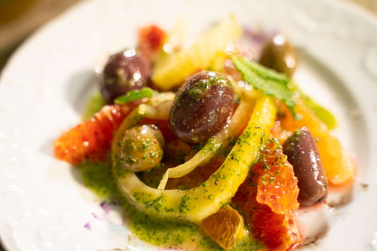 Assemble the Salad.Cut away peel and pith from oranges. Quarter oranges, then slice crosswise into ½-inch thick pieces.Combine Oranges and any accumulated juices, fennel, olives in a bowl. Drizzle with dressing and serve.