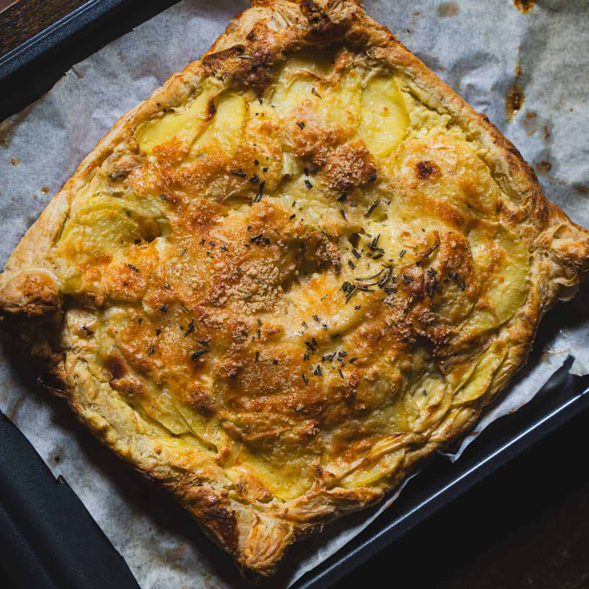 Tips for Success 💡 Slicing potatoes: A mandolin makes quick work of evenly slicing the potatoes. Yukon Golds work well here for their creaminess, or russet potatoes can be used for a starchier texture. 💡 Working with puff pastry: For perfect puff, keep the dough cold. The best method is to thaw it in the refrigerator overnight. If short on time, thaw on the counter room for 3