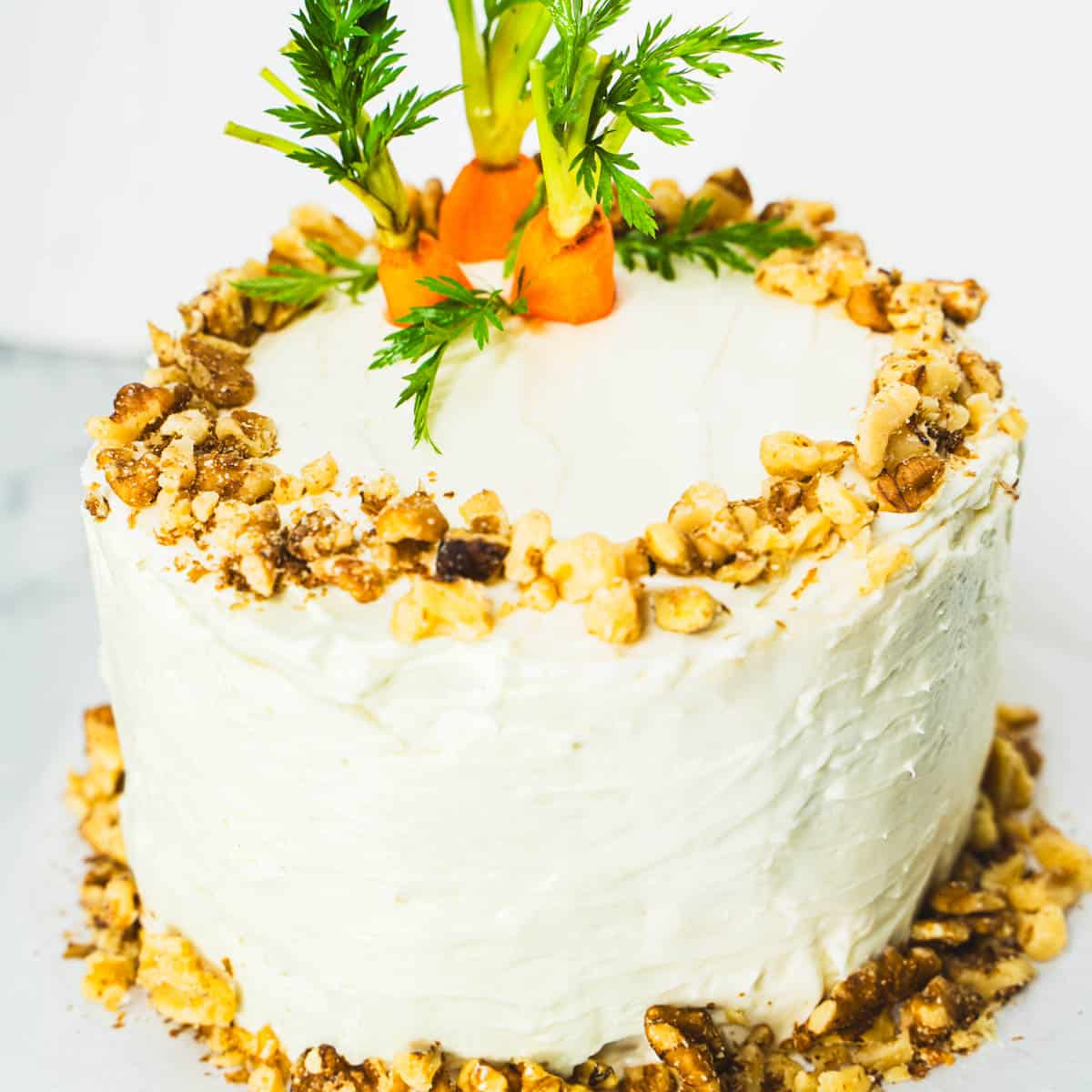For helpful notes on baking and frosting small 6-inch carrot walnut layer cake read how to bake a perfect layer cake and how to frost a layer cake.Refrigerating carrot cake: If your carrot cake has been iced and decorated with cream cheese frosting, store it in the refrigerator. If your cake is uncut, it can be stored in the frig uncovered, for about a week. Jump to Storage for more information on refrigerating your carrot cake.Freezing: Cooled cakes (not frosted) can be wrapped tightly in plastic wrap, then aluminum foil. Cakes can be frozen for up to 1 month. See Freezing for tips on freezing an iced layer cake.