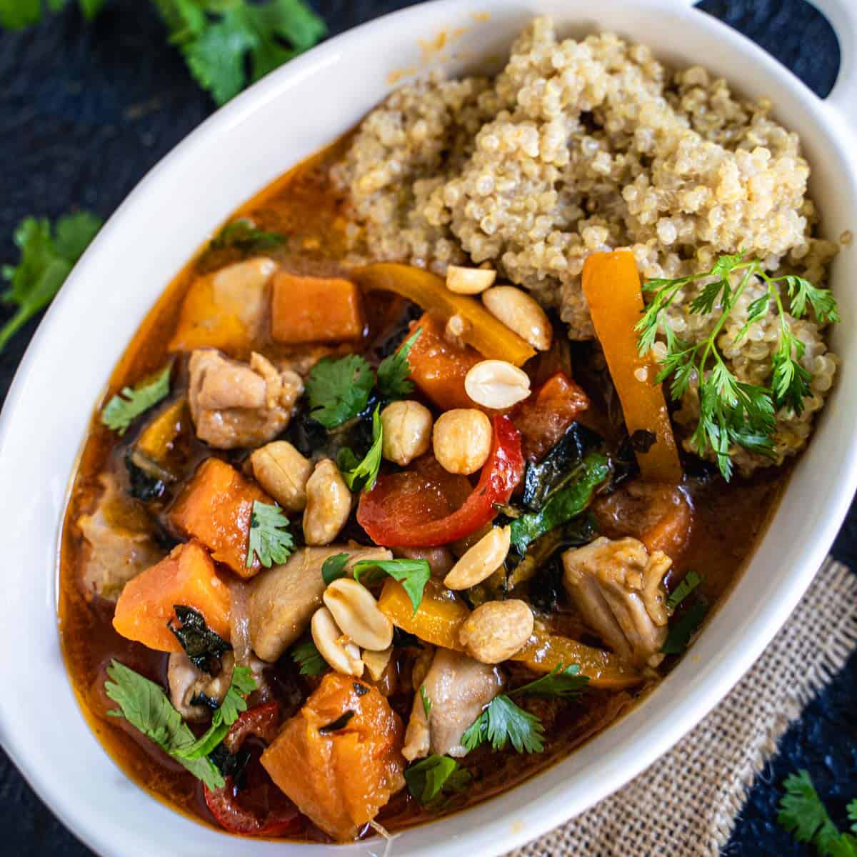 Note: The nutritional information is calculated for the curry only (does not include coconut rice/quinoa).